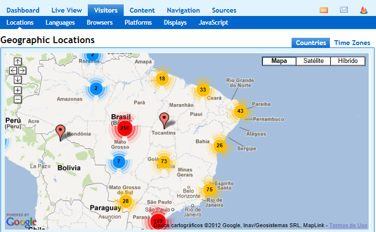 E, para concluir, não poderíamos deixar de mencionar que a Geolocalização é fator determinante para conhecermos nosso público! A imagem a seguir ilustra isso ao representar o mapeamento de acessos feito através do plugin W3Counter – http://www.w3counter.com/.